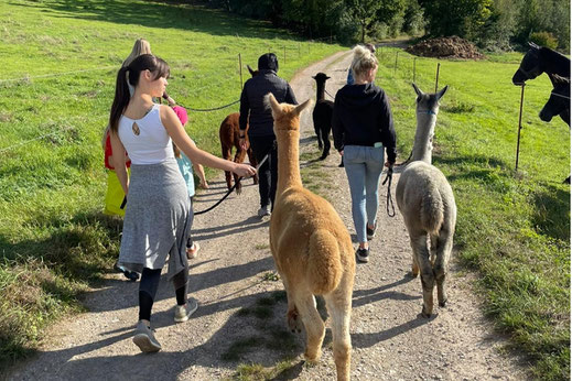 Bei unseren Alpaka-Erlebnissen lernt ihr unsere Alpakas ganz entspannt kennen. Wir erklären euch, was das Besondere an Alpakas ist und zeigen euch, wie ihr euch ihnen am besten nähert. Ihr dürft sie füttern, streicheln, fotografieren. Auch Fragen beantworten wir euch und erzählen lustige und interessante Geschichten über unsere Fellnasen.