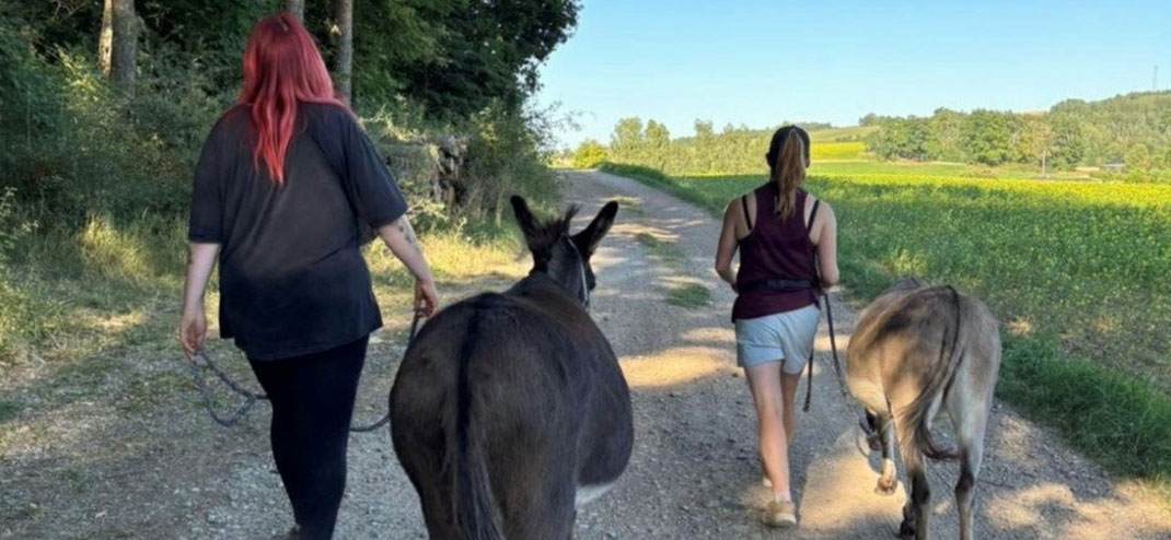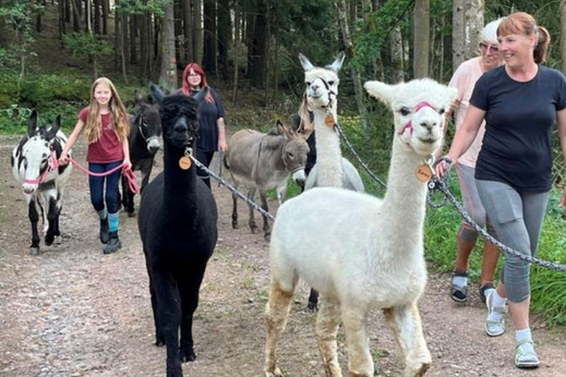 Ihr könnt aus unterschiedlichen Angeboten wählen – da ist für (fast) jeden etwas dabei! Aktuell leben drei Esel bei uns: Rosi, Wanda und Heinz. Die drei sind nicht nur super sympathisch, sondern auch echte Charakterköpfe. Bei unseren Wanderungen werden sie oft begleitet von unseren Alpakas – so entsteht eine bunt gemischte, gemütliche Wandertruppe, die einfach gute Laune macht!
