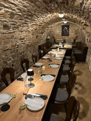 Weinkeller für exklusive Runden: Genieße ein besonderes Ambiente in unserem Weinkeller, der Platz für bis zu 18 Personen bietet. Perfekt für eine private Weinverkostung, einen entspannten Abend oder gemütliche Feier mit den Kollegen.