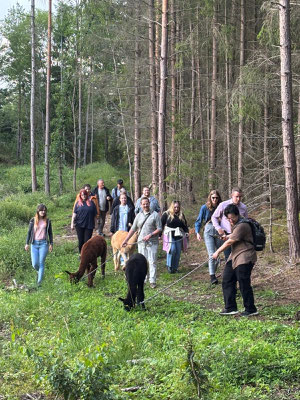 Entschleunigung pur: Bei einem gemütlichen Spaziergang mit den Alpakas könnt ihr den Kopf frei bekommen.