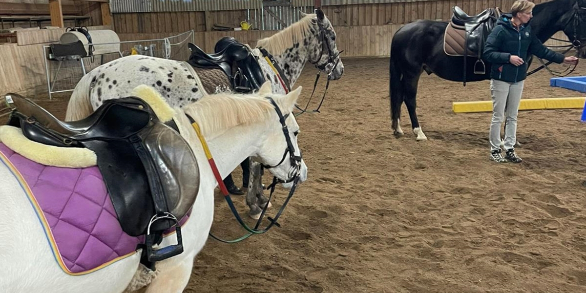 Die Pony-Zeit kommt natürlich nicht zu kurz. Hier könnt ihr die Ponys putzen und beim satteln helfen. Danach machen wir mit euch geführtes Ponyreiten entweder in unserer Reithalle, auf dem Reitplatz oder eine gemütliche Geländerunde.