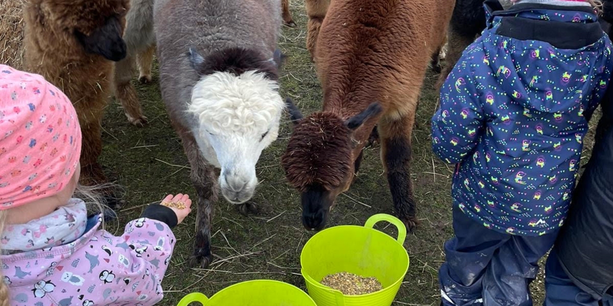 Wenn dann noch Zeit ist, besuchen wir gern mit euch die Alpakas zum Füttern oder schauen mal bei unseren Pferden auf der Koppel vorbei.