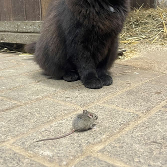 Selbstsicher und unerschrocken - hier bei der Lagebesprechung mit Luna. Wenn irgendwo ein Keks fehlt oder Heu verdächtig raschelt – garantiert war Henry im Einsatz. Mit wachem Blick, flinken Füßchen und einer Vorliebe für allerlei Hofsnacks ist unsere Stallmaus immer dabei, nie offiziell eingeladen – aber trotzdem nicht wegzudenken.