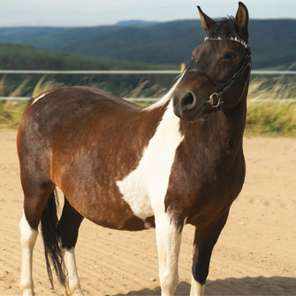 Mit seinem gutmütigen Charakter macht Ringo den größeren Reitern viel Freude. Anfangs muss er noch überzeugt werden, aber nach der Aufwärmphase ist er immer Feuer und Flamme. Am allerliebsten zieht er inbrünstig mit seinem Kumpel Effendi die Kutsche durch den schönen Thüringer Wald, hierbei bleibt aber leider kein Grashalm unberührt.